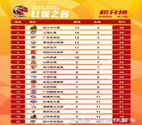 CBA常规赛第16轮展开全面角逐,辽宁、北京以及上海等队悉数出战。目前,积分榜上,卫冕冠军广厦依旧稳居第一名。上海队这一轮比赛掀翻新疆队以后,他们又一次杀回积分榜第2名。而11冠王广东队则下滑到积分榜第3名。深圳队这一战双杀辽宁队以后,他们的排名也上升到积分榜第6名。而作为上赛季的超级黑马,山西队也止住颓势,重返积分榜前八。四冠王辽宁队则排在积分榜第10名。